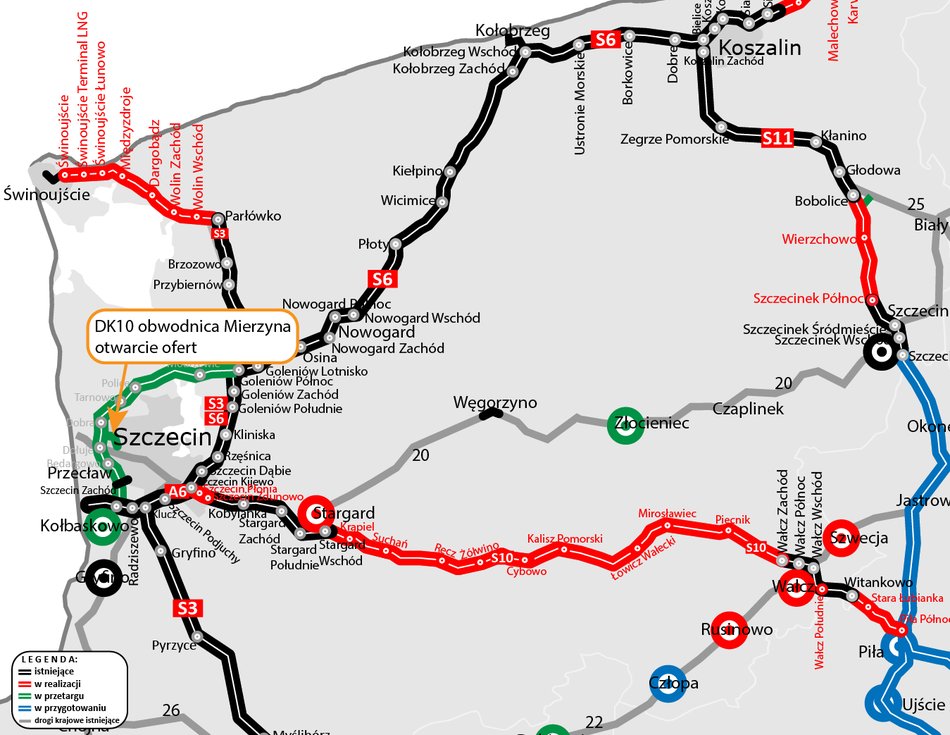 Obecnie DK10, wychodząca ze Szczecina w stronę granicy polsko-niemieckiej, przebiega przez gęsto zabudowany Mierzyn. Na drodze codziennie, w godzinach szczytu, tworzą się korki. Na połączeniu DK10 z Zachodnią Obwodnicą Szczecina powstanie węzeł Szczecin Zachód, który będzie jednym z głównych połączeń z centrum Szczecina.