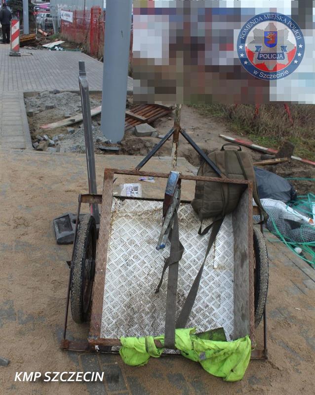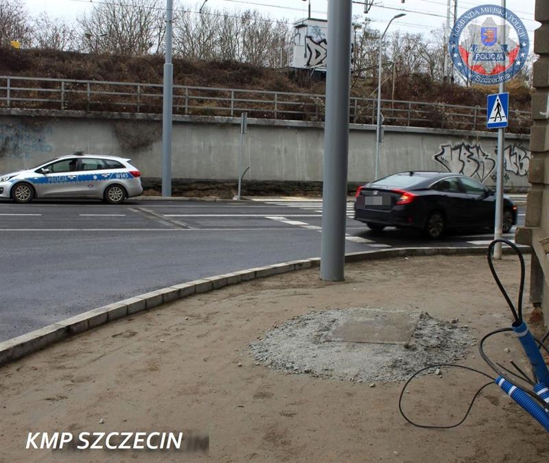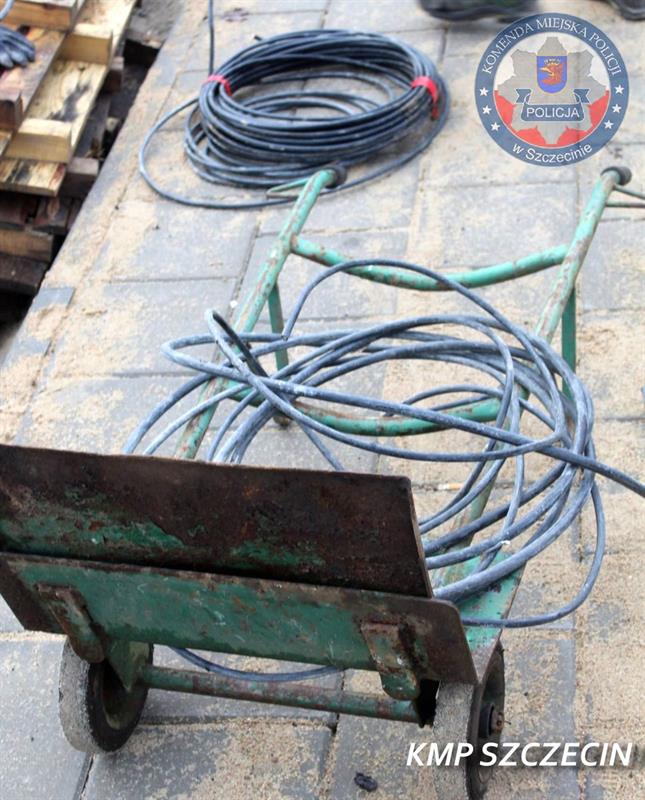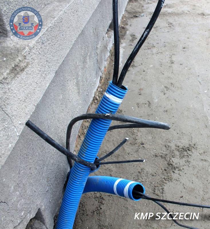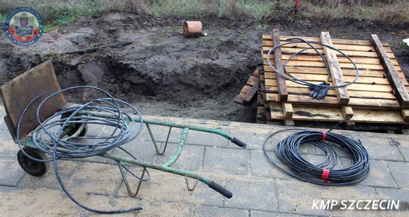 Nieobojętność jednego z kierowców doprowadziła do zatrzymania czterech złodziei kabli na ul. Kolumba w Szczecinie. Fot. KMP Szczecin