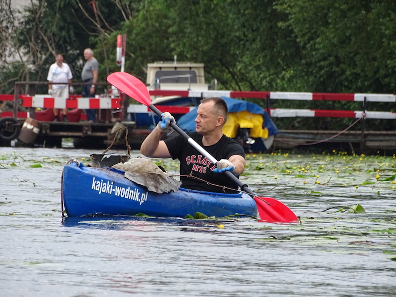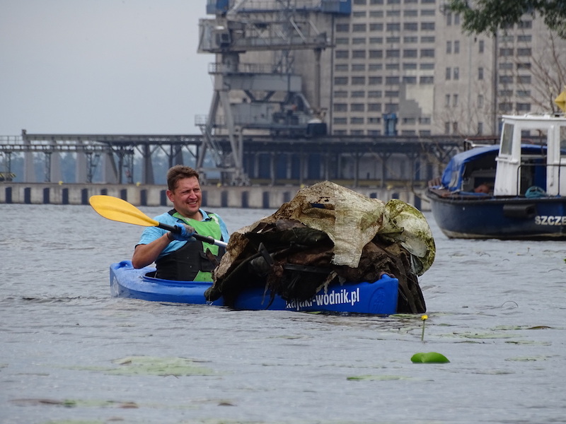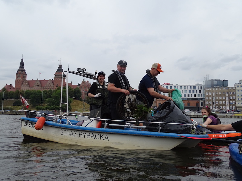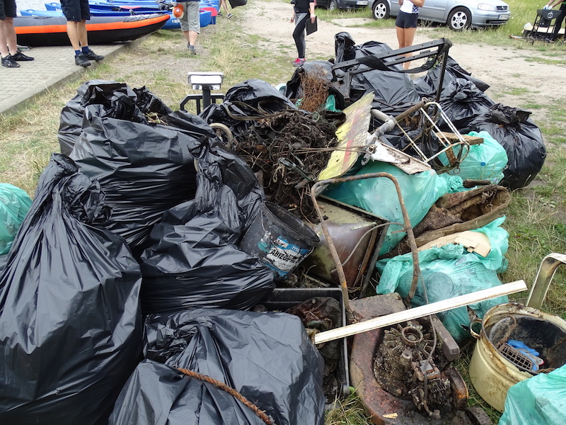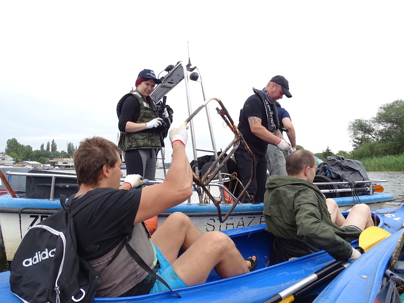Społecznicy wyłowili z brzegu wyspy położonej naprzeciwko Wałów Chrobrego m.in. kosiarkę do trawy, telewizor, sedes, taczkę, a nawet wyjątkowo niebezpieczny dla środowiska akumulator samochodowy. To tylko niewielka część z ważącej niemal 600 kg sterty śmieci, którą kajakarze wyciągnęli z wody i przetransportowali na brzeg przy pomocy Okręgu Polskiego Związku Wędkarstwa w Szczecinie i Społecznej Straży Rybackiej. Zebrane w ten sposób śmieci bezpłatnie zutylizuje firma Remondis Szczecin.