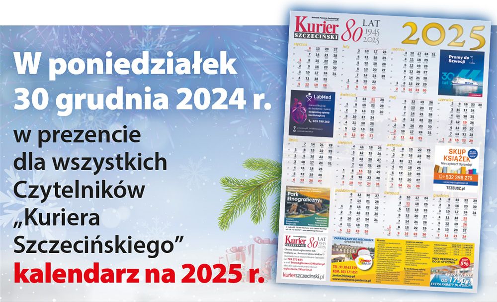 Już w najbliższy poniedziałek (30 grudnia) do papierowego wydania „Kuriera Szczecińskiego” w prezencie dla wszystkich Czytelników dołączamy kalendarz na 2025 r.