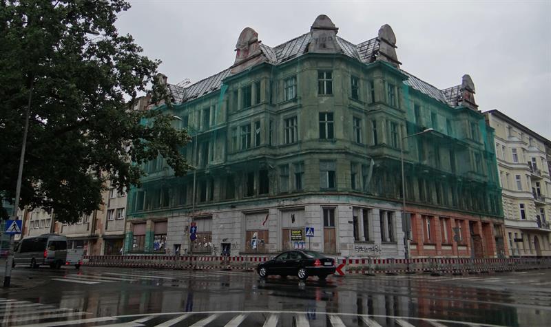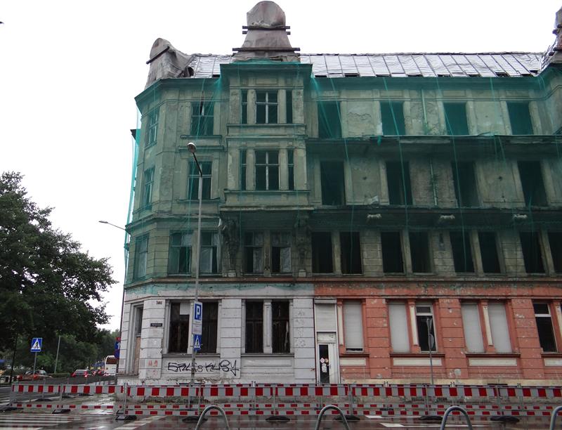 Na zdjęciu: Budynek po dawnym hotelu Piast w ruinie przy pl. Zwycięstwa 3 w Szczecinie. Za długi właściciela komornik ogłosił na 8 sierpnia 2018 r. licytację nieruchomości. Poprzednią na kilka dni przez wyznaczonym terminem odwołał. Jak będzie tym razem?