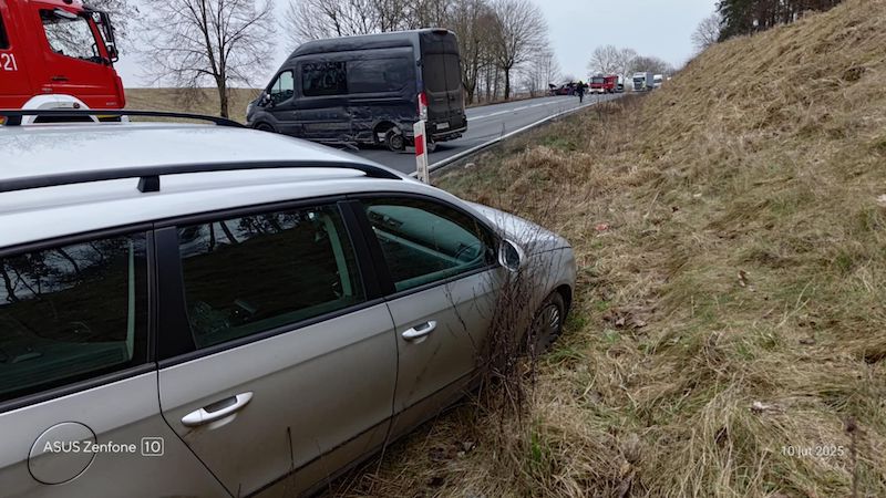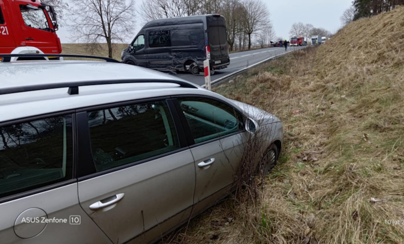 Na drodze krajowej nr 10 na trasie Suchań-Krąpiel zderzyły się w poniedziałek przed południem trzy samochody.