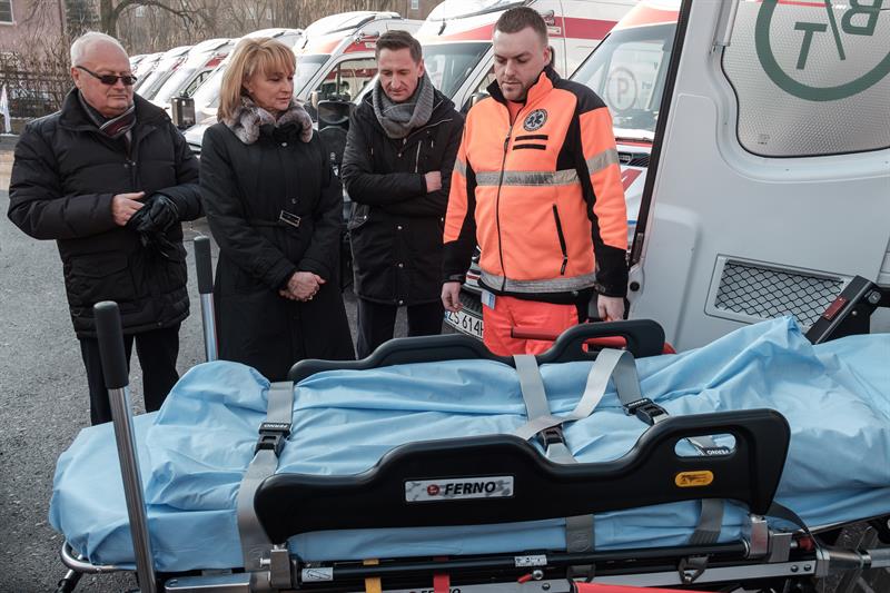 - Takich, których ratownicy mieliby problem przenieść do karetki - i to nie tylko z powodu ograniczenia ludzkich fizycznych możliwości, ale też z powodu maksymalnej nośności takich noszy - tłumaczy Adam Rudnik, ratownik medyczny ze Szczecina. - Te nosze i platforma mają zwiększoną wytrzymałość oraz siłowniki elektryczne. Tak naprawdę wystarczy chorego położyć na nosze i po naciśnięciu guzika one automatycznie podjeżdżają do góry. Samo wsunięcie pacjenta do ambulansu jest dla niego bardziej komfortowe, bo płynne, bez szarpnięcia. Praktycznie podjeżdża z równego poziomu i wjeżdża do karetki. Nie ma tego uderzenia. A krzesełko wyposażone w specjalne gąsienice pomalutku zjeżdża z pacjentem ze schodów.