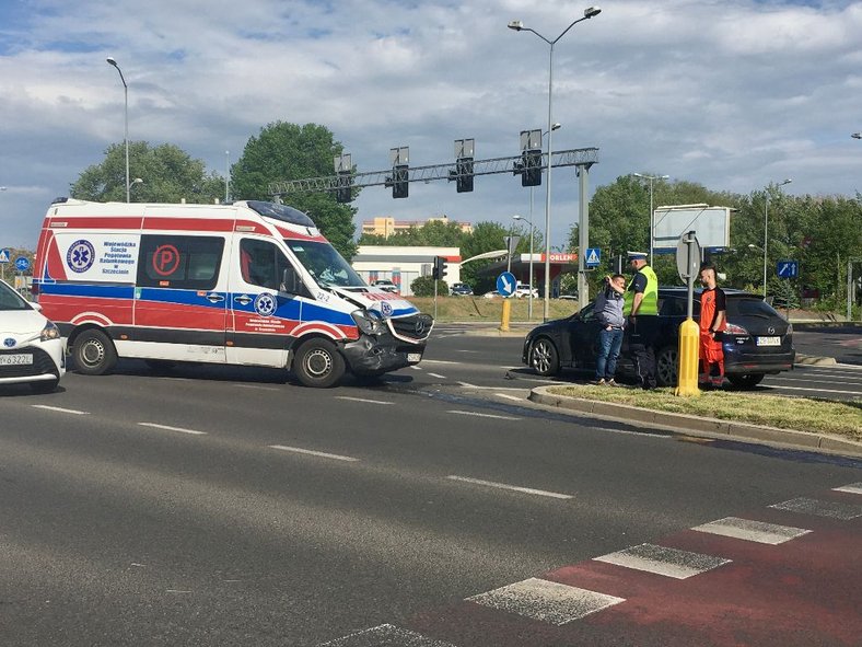 Na skrzyżowaniu ulic Wszystkich Świętych i Chopina w Szczecinie w piątek (13 maja) przed godz. 16 doszło do zderzenia karetki Pogotowia Ratunkowego z osobówką. Ambulans, który wiózł pacjenta z Golęcina, spotkał się pośrodku jezdni z mazdą od strony ul. Arkońskiej. Na miejscu jest policja i ustala okoliczności. Karetka ma rozbity przód, a mazda wgniecione drzwi z boku od strony kierowcy.