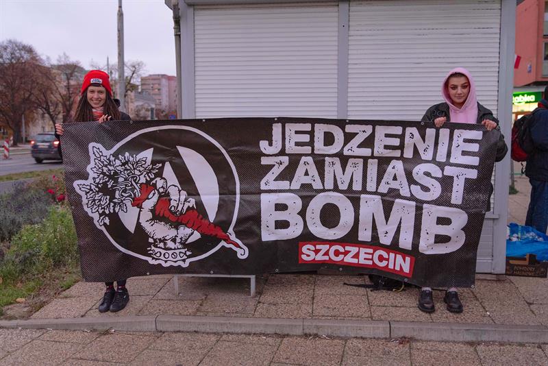 Przyświeca im hasło: Jedzenie zamiast bomb. Skupiają się na realnej pomocy – przygotowują ciepłe posiłki, by za darmo rozdać je tym, którzy tego potrzebują. Wystarczy przyjść w niedzielę o godz. 16 w stałe miejsce u zbiegu al. Wyzwolenia z ul. Malczewskiego. Przychodzą zarówno emeryci, renciści, jak i osoby w kryzysie bezdomności. W związku z drożyzną potrzebujących w tym roku może być więcej.