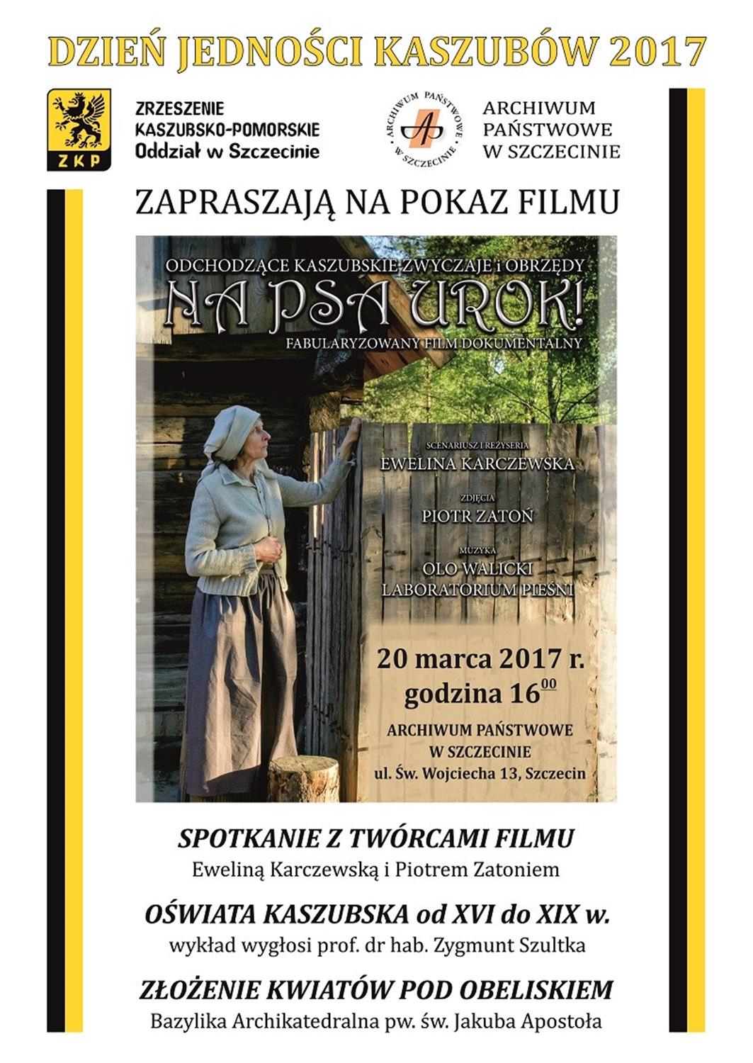Zrzeszenie zaprasza m.in. na pokaz fabularyzowanego filmu dokumentalnego „Na psa urok” o odchodzących kaszubskich zwyczajach i obrzędach. Po projekcji odbędzie się spotkanie z twórcami filmu, Eweliną Karczewską i Piotrem Zatoniem. Wykład nt. oświaty kaszubskiej od 16. do 19. wieku wygłosi prof. dr hab. Zygmunt Szultka. W ramach obchodów złożone też zostaną kwiaty pod obeliskiem w bazylice archikatedralnej pw. św. Jakuba Apostoła.