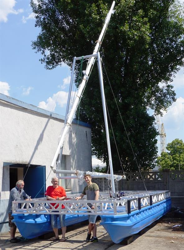 Prototyp żaglowego katamarana powstaje w szczecińskiej firmie Alu-Boats, prowadzonej przez Mariusza Snarskiego. To innowacyjna jednostka, której projekt opracowano z udziałem studentów Wydziału Techniki Morskiej i Transportu (kierunek budowa jachtów) Zachodniopomorskiego Uniwersytetu Technologicznego, pod kierunkiem dr. inż., kapitana jachtowego Zbigniewa Zbroi. Inspiracją była aktywność i niezwykłe osiągnięcia 88-letniego dziś żeglarza Henryka Widery. To m.in. dla niego ma być ten katamaran.