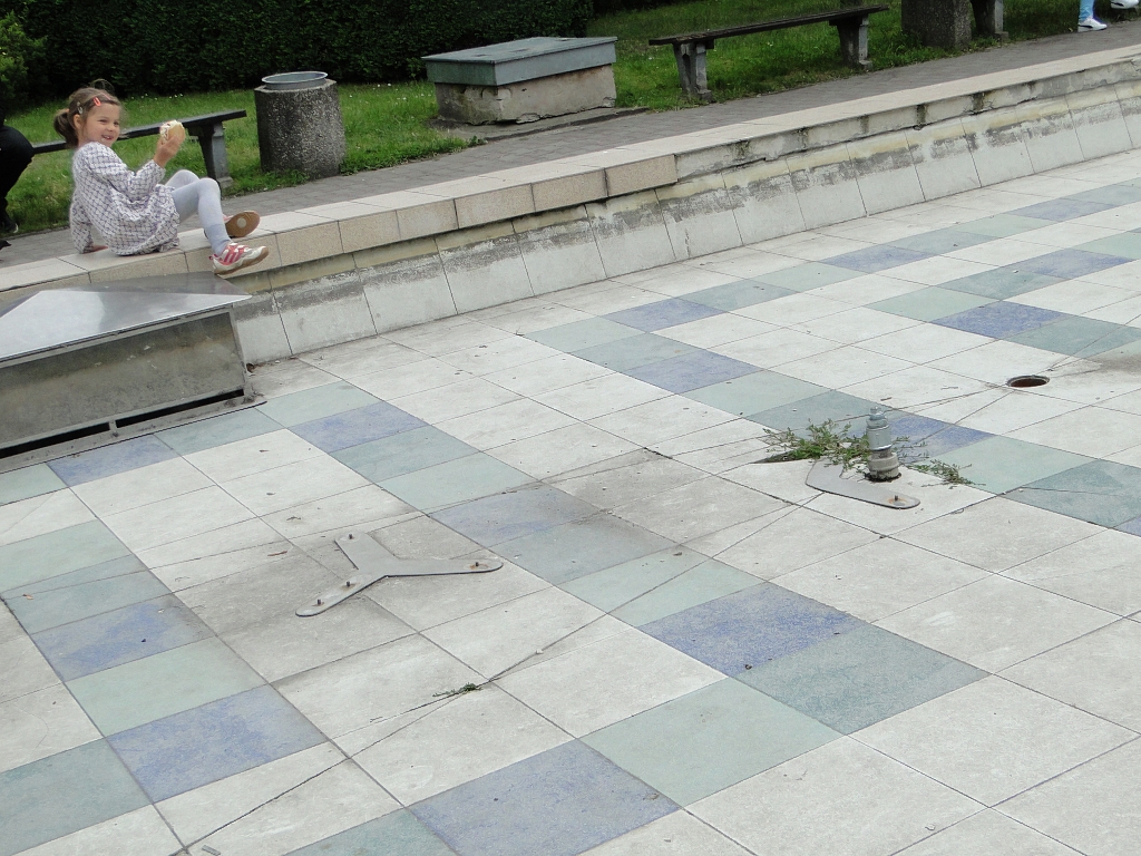 Na zdjęciu: Nieczynna miejska fontanna w centrum miasta, zdjęcia zrobione 8 czerwca.