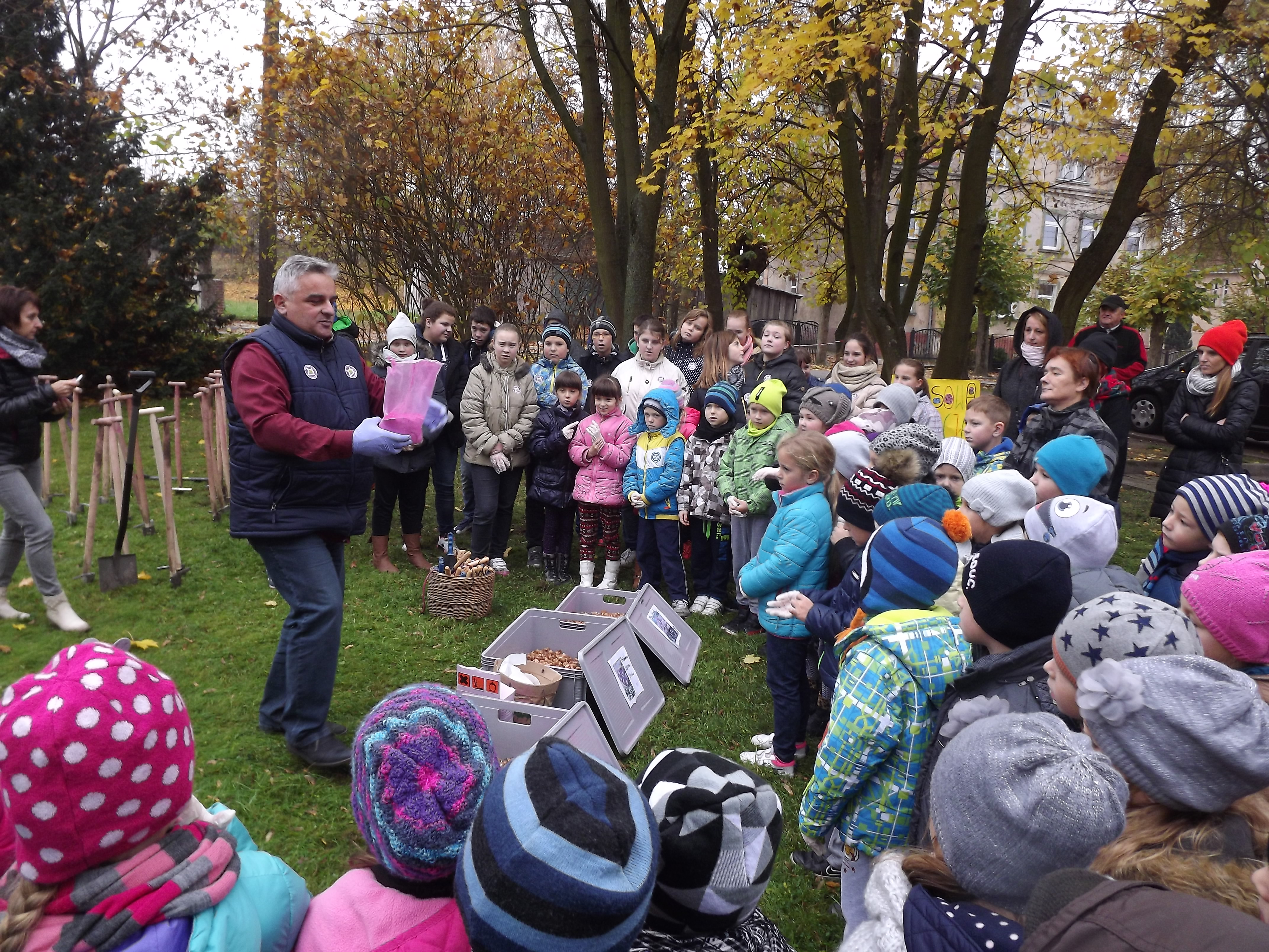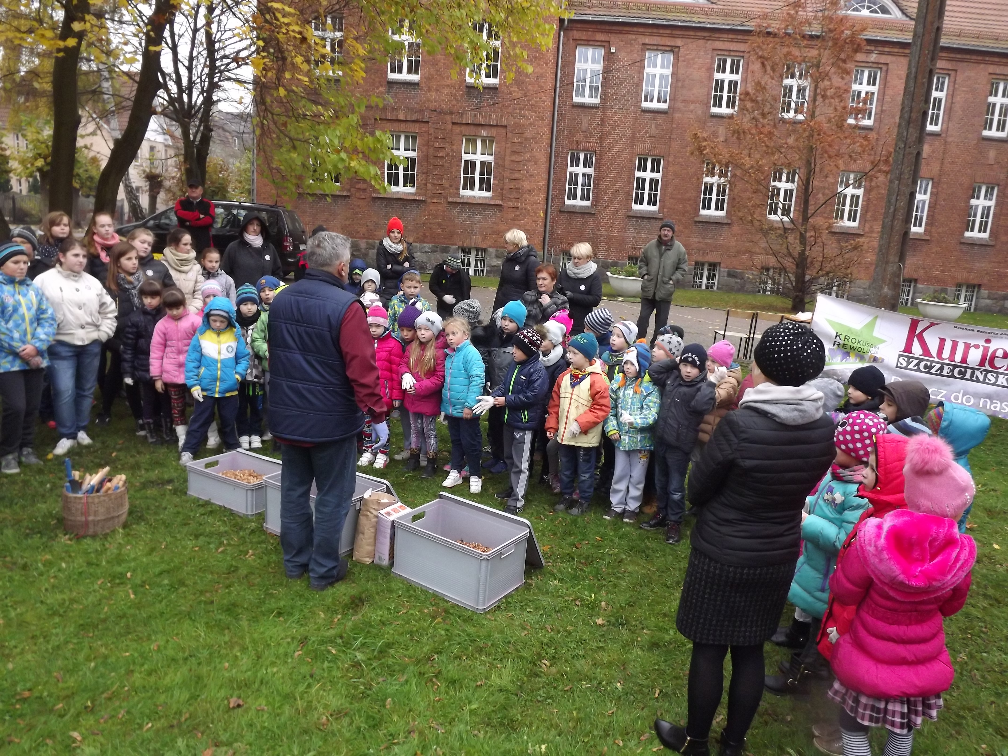 Blisko osiem tysięcy cebulek krokusów w trzech kolorach zamieni się wiosną w dywan kwiatowy na przyszkolnym skwerze, tuż przy reprezentacyjnej ulicy miasteczka.