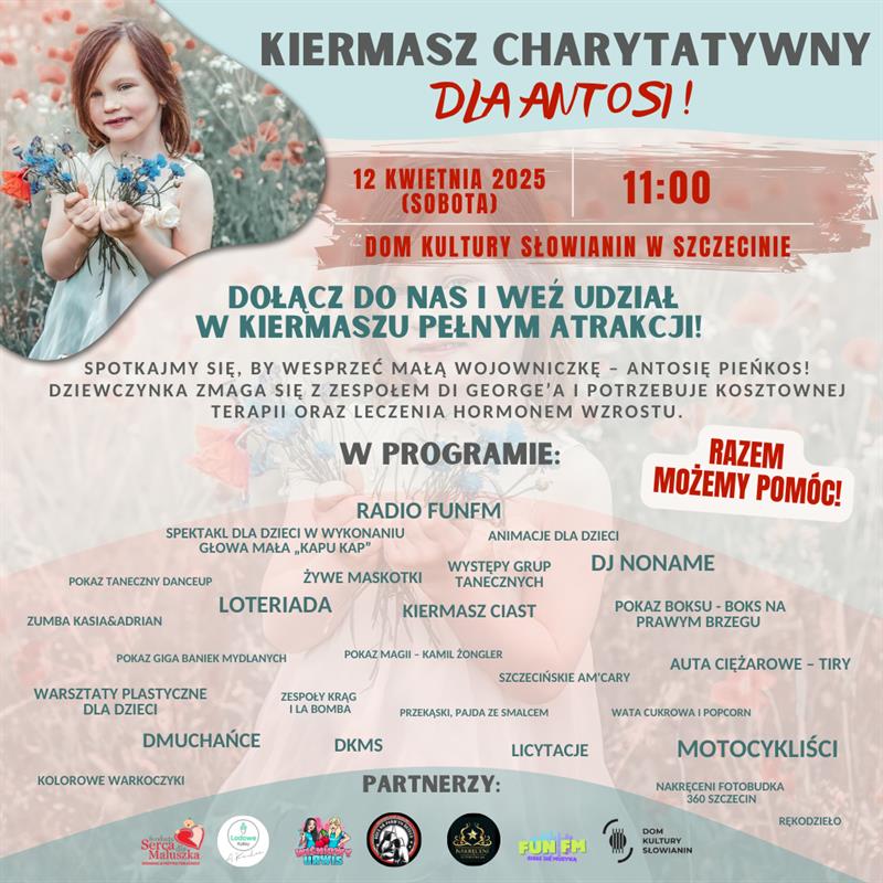 Ten dzień będzie wyjątkowy – zapowiada sobotnie atrakcje Dom Kultury Słowianin przy ul. Korzeniowskiego w Szczecinie. Odbędzie się tam kiermasz charytatywny dla Antosi Pieńkos. Mała wojowniczka potrzebuje wsparcia.