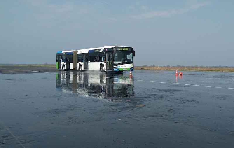 Kolejna już grupa kierowców ze Szczecińskiego Przedsiębiorstwa Autobusowego "Dąbie" podnosiła swoje umiejętności na specjalnym torze w Bednarach. W ramach umowy na zakup autobusów z firmą Solaris Bus&Coach kierowcy szkolili się w zakresie bezpiecznej jazdy.
