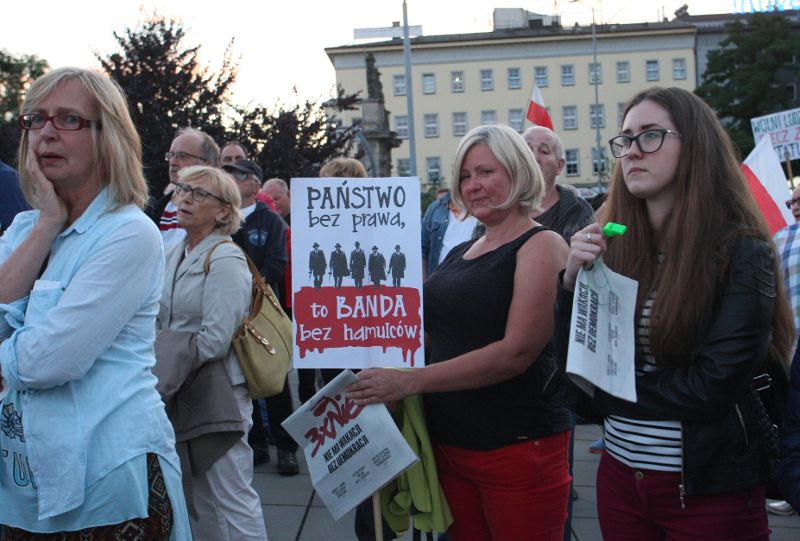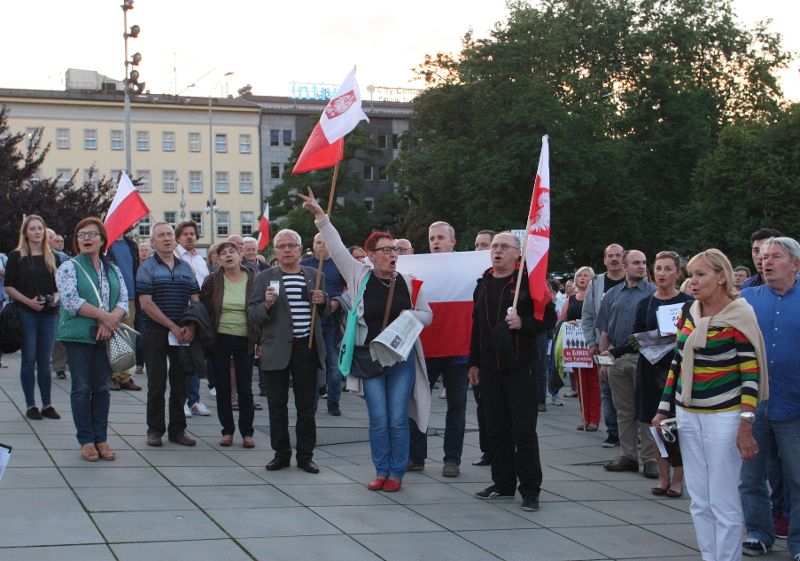 Na pl. Solidarności o godz. 21 zgromadziło się kilka tysięcy ludzi - szczecinian i mieszkańców gmin ościennych, np. Polic. - Krzyczeliśmy do posłów - nie posłuchali, krzyczeliśmy do senatorów - nie posłuchali, teraz krzyczymy do prezydenta Andrzeja Dudy: Trzy razy veto! (o zawetowanie ustaw o ustroju sądów powszechnych, KRS i Sądzie Najwyższym - mag)