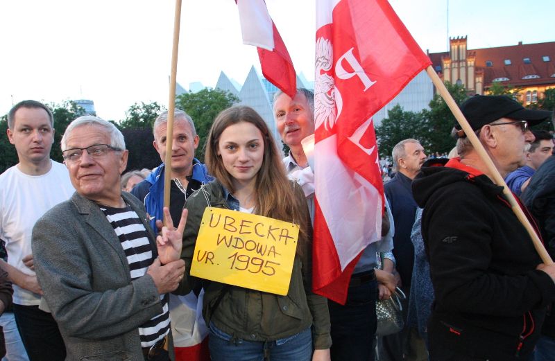 Na zdjęciu, może nie UBecka wdowa, ale raczej UBecka wnuczka, skoro już koniecznie chce być tak nazywana. Dlaczego ludzie są tak niemądrzy i dają się manipulować tym, którzy za wszelką cenę chcą odzyskać utraconą władzę, bo ludzie mieli już dość ich oszustw i kłamstw. Kim trzeba być, aby dać sobą sterować jak narzędziem i protestować, nie wiedząc po co - tylko dlatego, bo każe im totalna opozycja. Jak można kłamać, że to apolityczny protest, skoro widać polityków poszczególnych partii. Za ich czasów na ulicy byłyby armatki wodne i kopanie po twarzy.