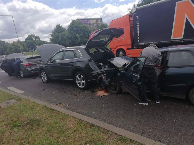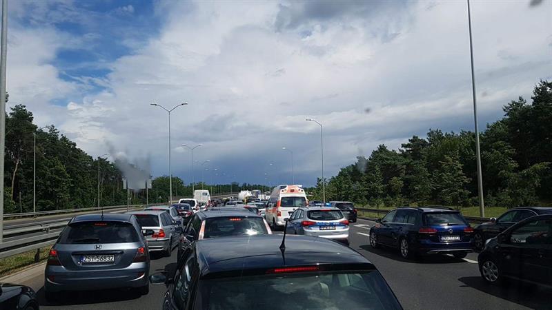 Dwa lewe pasy ruchu przy wyjeździe ze Szczecina w kierunku Stargardu są zablokowane w wyniku kolizji trzech samochodów.