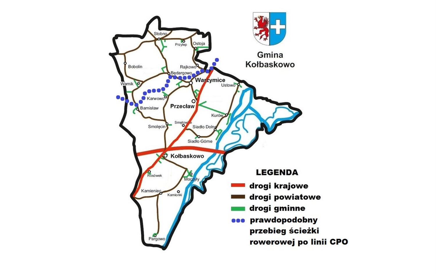 Na zdjęciu: Prawdopodobny przebieg ścieżki rowerowej po linii CPO.