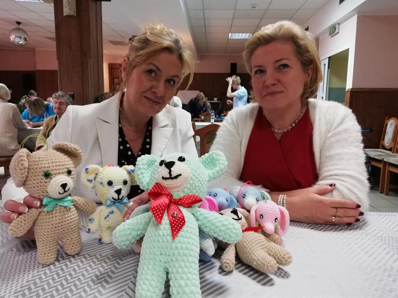 Na zdjęciu: Dorota Songin i Anna Strzelczak ze Szczecińskiej Fundacji Zdroje z ręcznie wykonanymi maskotkami, których sprzedaż również zasili lokalny cel "Kilometrów Dobra".