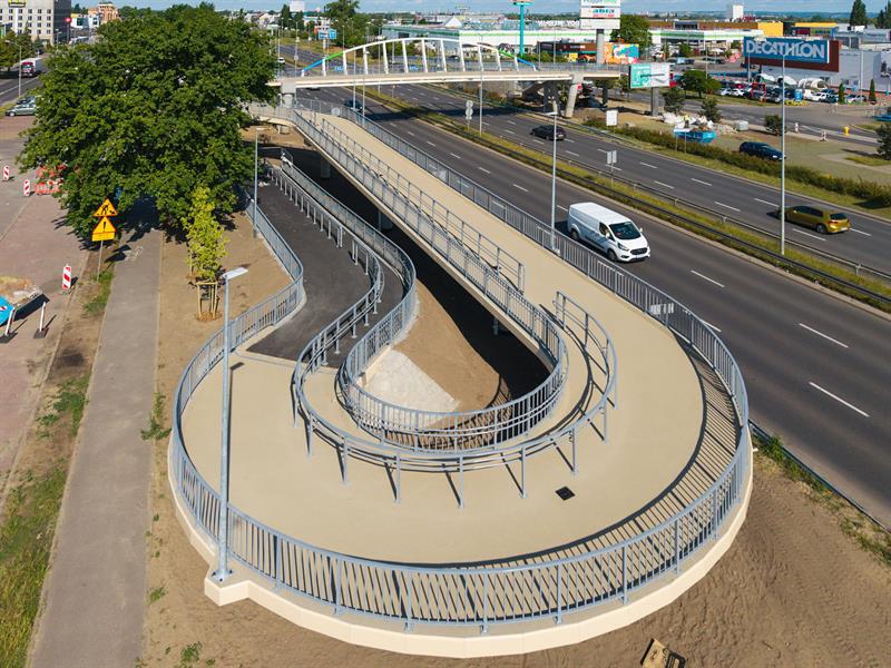 Na prawobrzeżu dobiegają końca prace przy budowie kładki pieszo-rowerowej nad ulicą Struga.