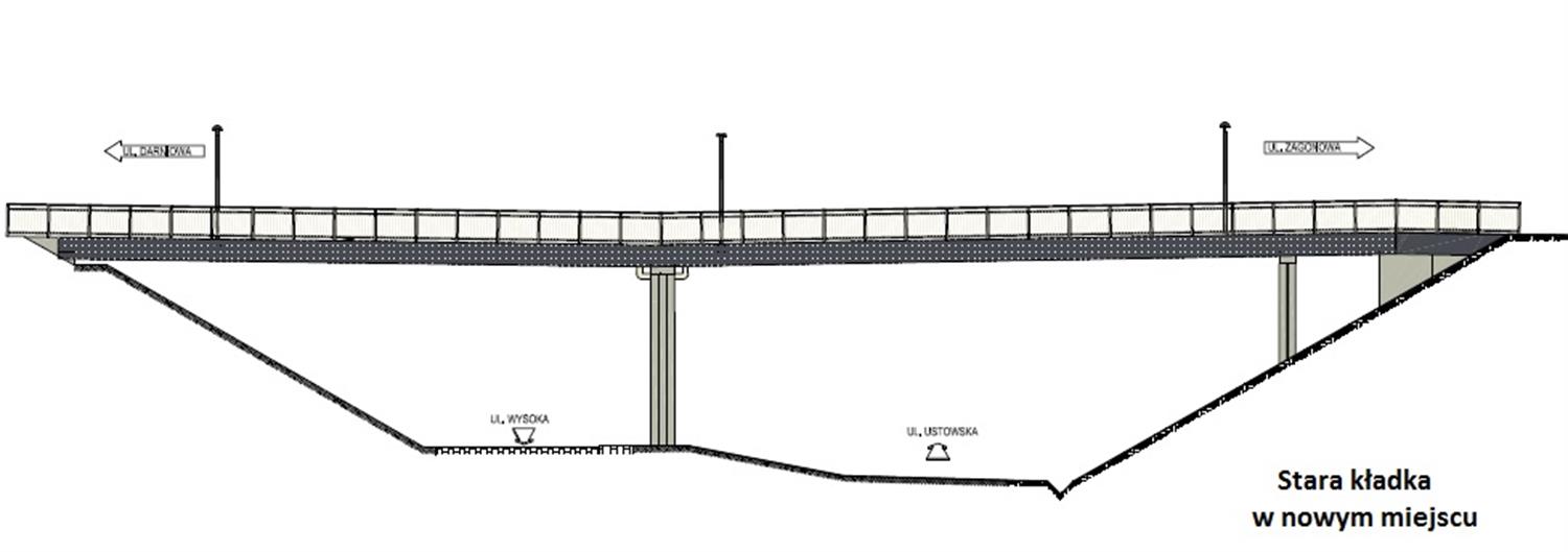 Po wybudowaniu nowej kładki stara kładka - krótsza, węższa, przeznaczona dotąd tylko dla pieszych zostanie zdemontowana i przeniesiona o ok. 150 metrów w miejsce, gdzie połączy ulice Zagonową i Krzewinkową/Darniową (nad ulicą Ustowską i Wysoką). Będzie miała długość 53,4 m i szerokość użytkową 1,95 m. Obie kładki będą ze sobą skomunikowane ciągami pieszymi i pieszo-rowerowymi.
