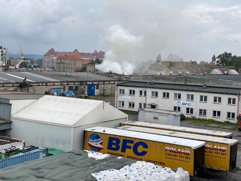- Pożar jest już opanowany, ale podajemy strumienie w obronie sąsiednich budynków, które również są zagrożone - poinformował nas Dariusz Kamoda, dyżurny Portowej Straży Pożarnej w Szczecinie.