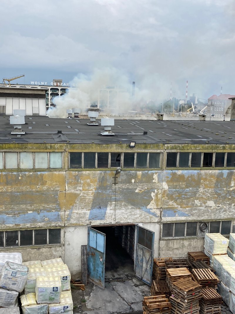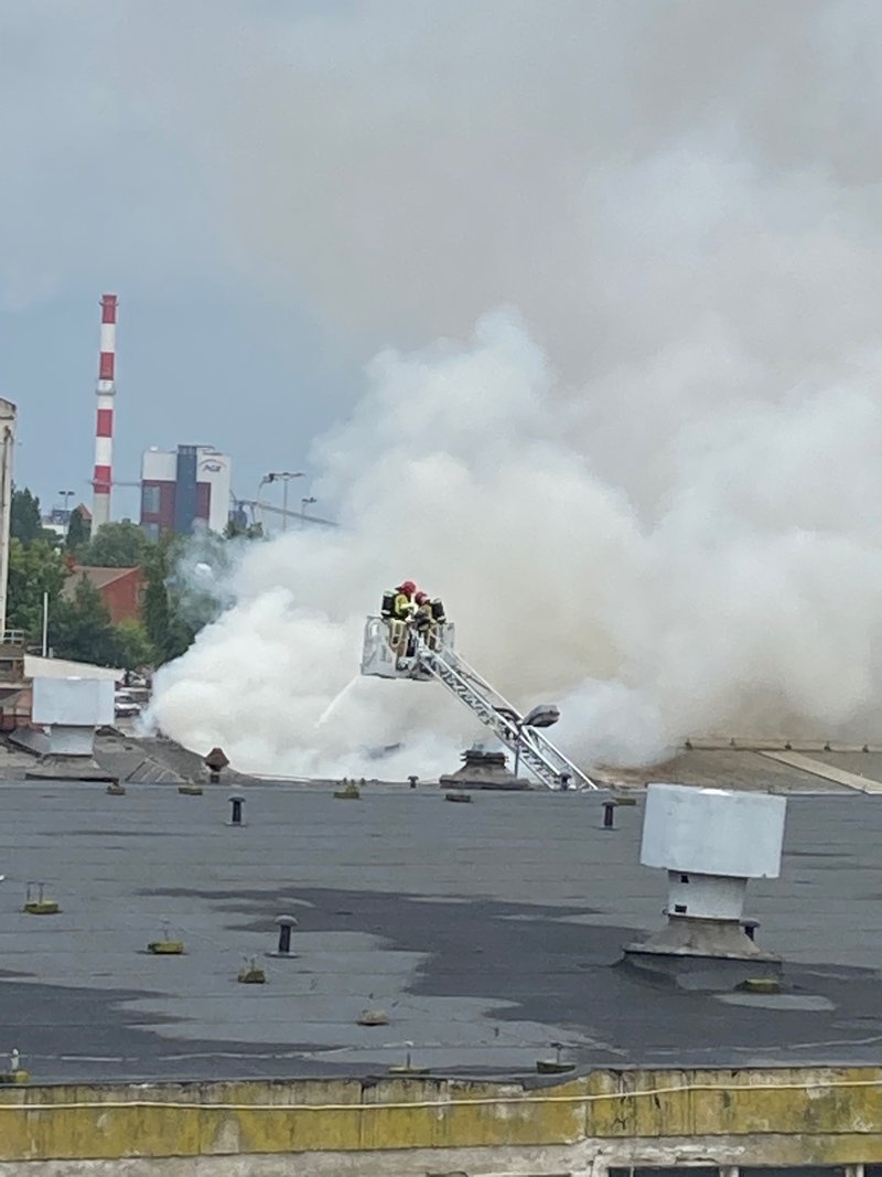 Ogień objął dach magazynu. Akcja gaśnicza cały czas trwa.