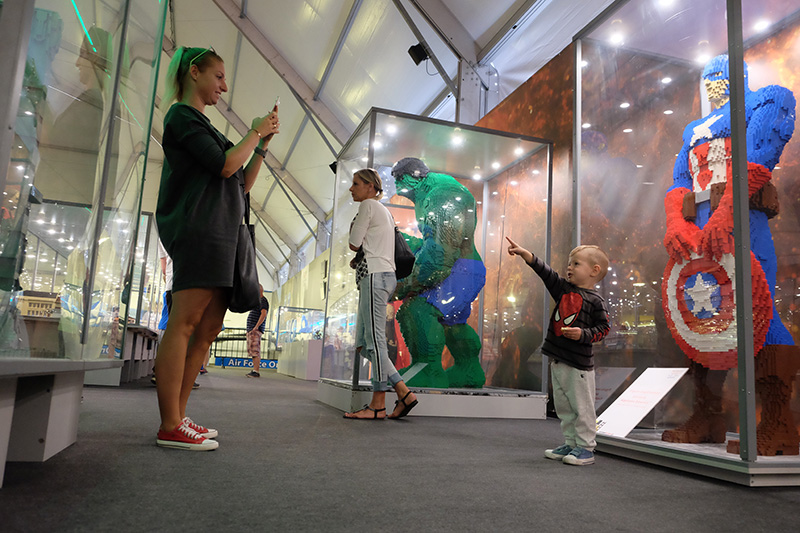 W alei gwiazd sportu prezentowane są wykonane w skali 1:1 postacie m.in. Roberta Lewandowskiego, Marcina Gortata i Agnieszki Radwańskiej. Największą atrakcją wystawy jest wykonany z ponad miliona elementów Air Force One - samolot jakim podróżuje prezydent USA. Model wykonany w skali 1:7 ma prawie 11 metrów długości.