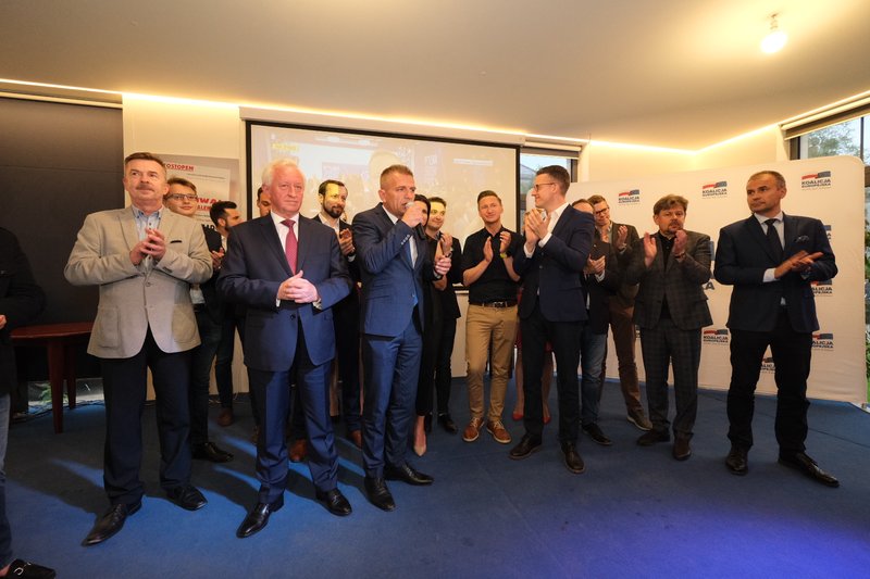 Na scenie pojawili się kandydaci Koalicji wraz z marszałkiem województwa Olgierdem Geblewiczem, posłem Arkadiuszem Marchewką, oraz byłym posłem Nowoczesnej Piotrem Misiłą.