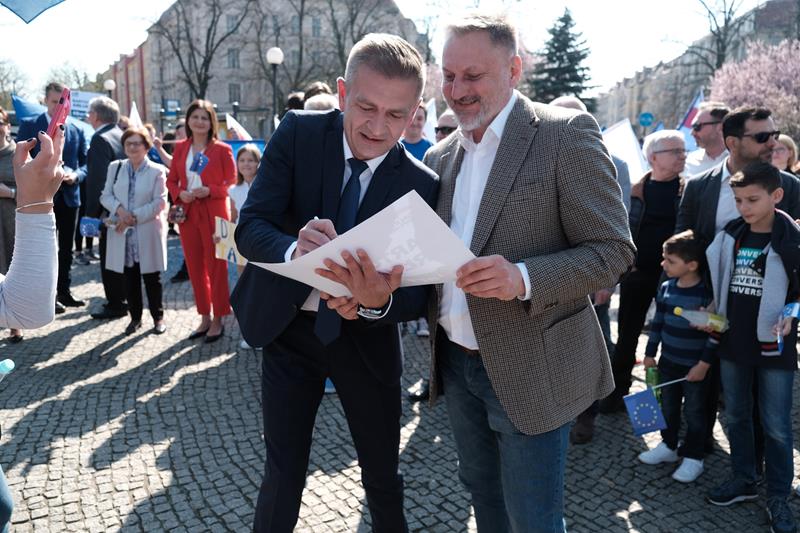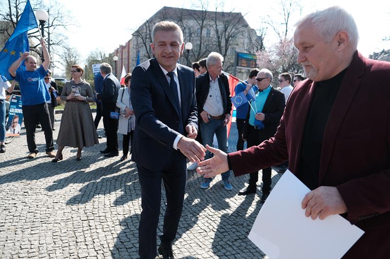 - To wielka sprawa: Koalicja Europejska stała się faktem - mówił Bogusław Liberadzki z Sojuszu Lewicy Demokratycznej, jedynka na liście. - Unia Europejska to jest wspólnota - ludzi, z ludźmi, przez ludzi, dla ludzi, a nie jakieś kaprysy rządu. Piętnaście lat naszej obecności w UE to czas naszego awansu cywilizacyjnego. Pięć lat temu szedłem do wybór pod hasłem: S3 będzie do Świnoujścia i tunel będzie. Jest. S6 będziemy budować od Szczecina do Koszalina. Buduje się. Będą obwodnice Szczecinka i Wałcza. Są. Pieniądze na linię kolejową Szczecin - Poznań? Są. Nadodrzanka? Jest. Dotrzymaliśmy słowa. Nasze województwo rośnie, miasta i wioski korzystają.