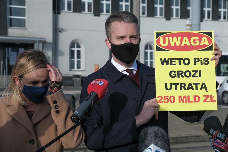 - Weto PiS grozi utratą 250 miliardów złotych - ostrzegał poseł Arkadiusz Marchewka na konferencji przed Dworcem Głównym. - To są pieniądze, na które wszyscy przedsiębiorcy, którzy zostali dotknięci kryzysem, czekają. Bilans obecności Polski w Unii to 188 miliardów euro i cywilizacyjny awans.