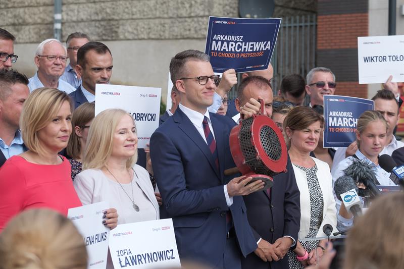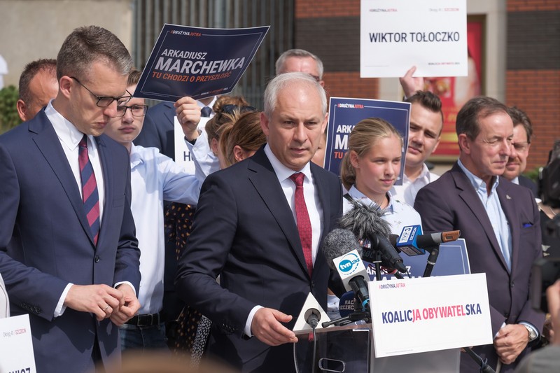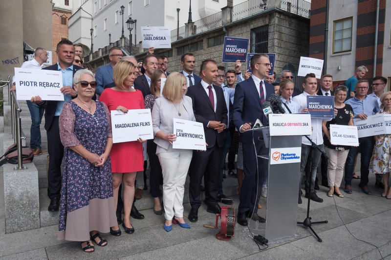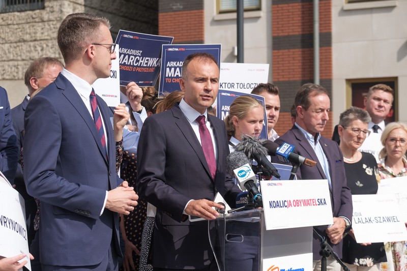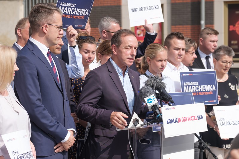 Na zdjęciu: Arkadiusz Marchewka, lider szczecińskiej listy Koalicji Obywatelskiej, zaprezentował drużynę, z którą powalczy o zwycięstwo w październikowych wyborach parlamentarnych.