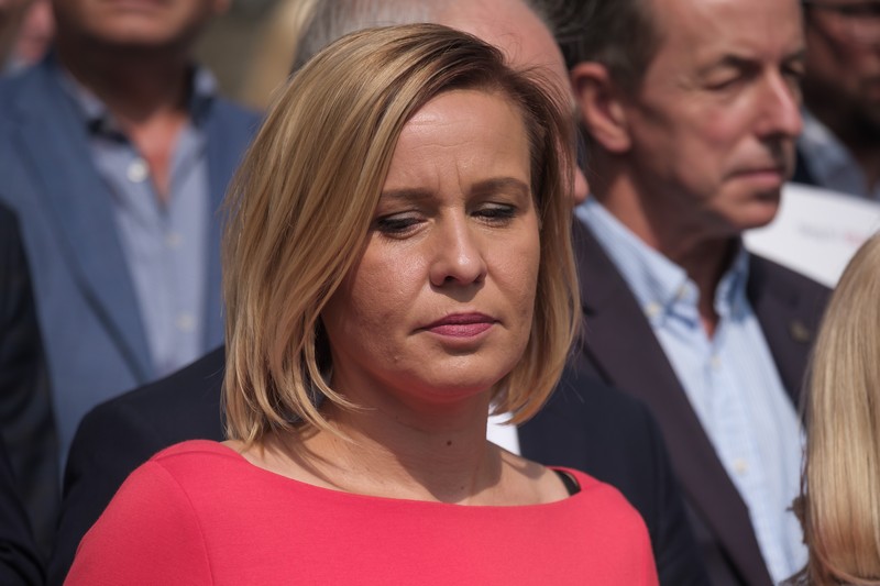 - Każde z nas ma taką kartkę ze swoim imieniem i nazwiskiem - mówił kandydujący z szóstego miejsca na liście Grzegorz Napieralski. - I ja swoją chciałbym symbolicznie przekazać Magdalenie Kochan, bo moja misja w senacie się już kończy i mam nadzieję, że ona mnie zastąpi.