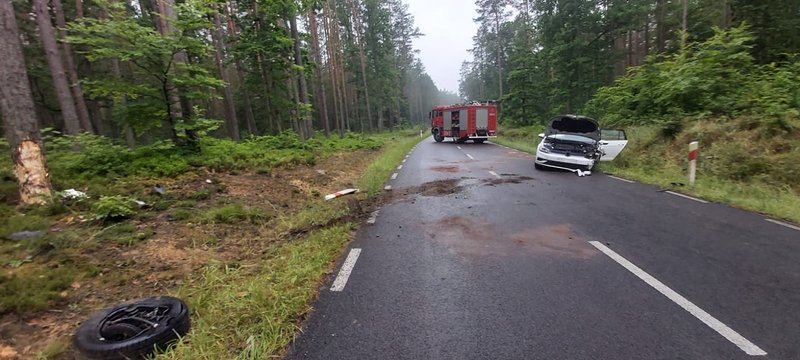 Do groźnego wypadku doszło w sobotę na drodze z Nowego Warpna do Dobieszczyna. Kierujący samochodem osobowym na mokrej nawierzchni wpadł w poślizg. Jego auto zjechało z drogi i uderzyło w drzewo.