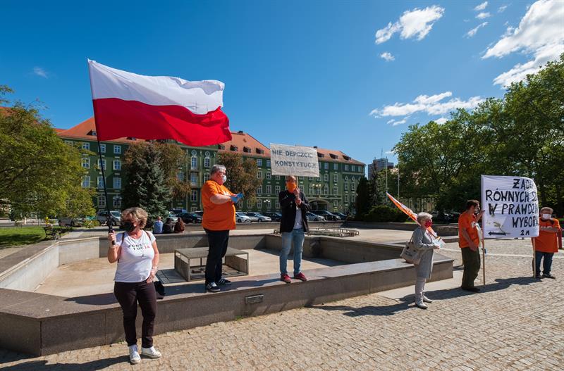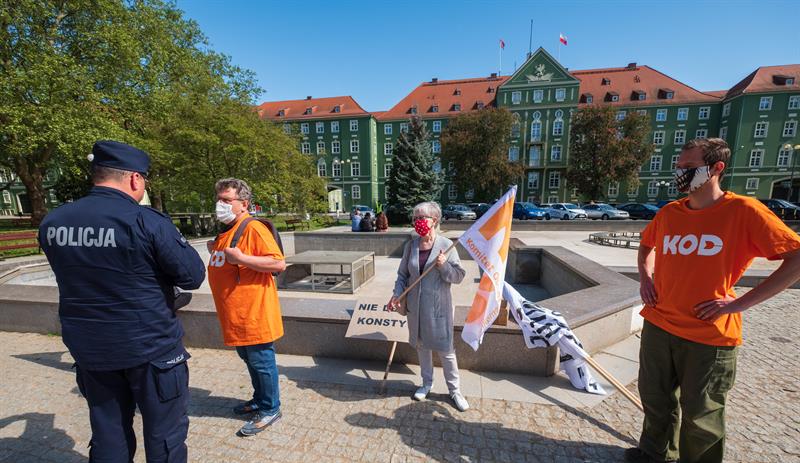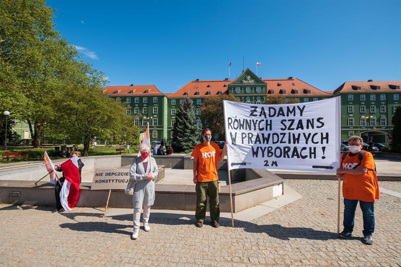 W sobotę na Jasnych Błoniach w Szczecinie z hasłami "Żądamy równych szans w prawdziwych wyborach!" i "Nie depczcie Konstytucji" manifestowali przedstawiciele KOD Zachodniopomorskie. - Nie godzimy się na prawo pisane na kolanie prezesa, stosownie do potrzeb chwili - mówili. - Na machlojki z wyborami, przeprowadzanie ich na siłę, w czasie pandemii, która się przecież nie skończyła, bo to widać w prawie, w zarządzeniach, w środkach bezpieczeństwa. Nie godzimy się na wykorzystywanie pandemii również do kneblowania ust społeczeństwu. Nie ma naszej zgody na takie metody.