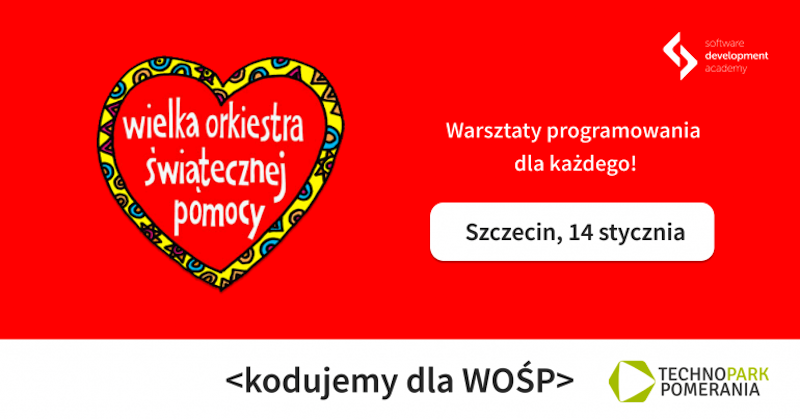 W niedzielę 14 stycznia, w ramach 26. finału WOŚP, każdy mieszkaniec Szczecina, który chciałby zacząć przygodę z programowaniem, może zapisać się na darmowe warsztaty „JavaScript od podstaw” organizowane przez Software Development Academy. Podczas warsztatów odbędzie się zbiórka pieniędzy na rzecz Orkiestry.