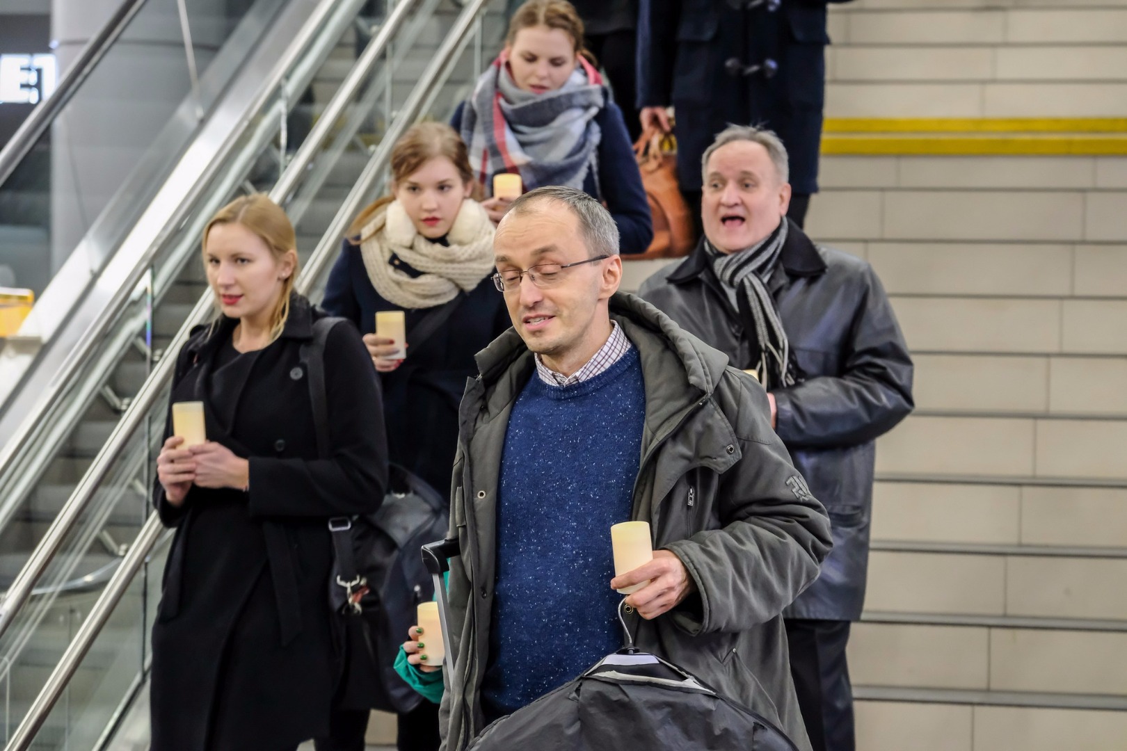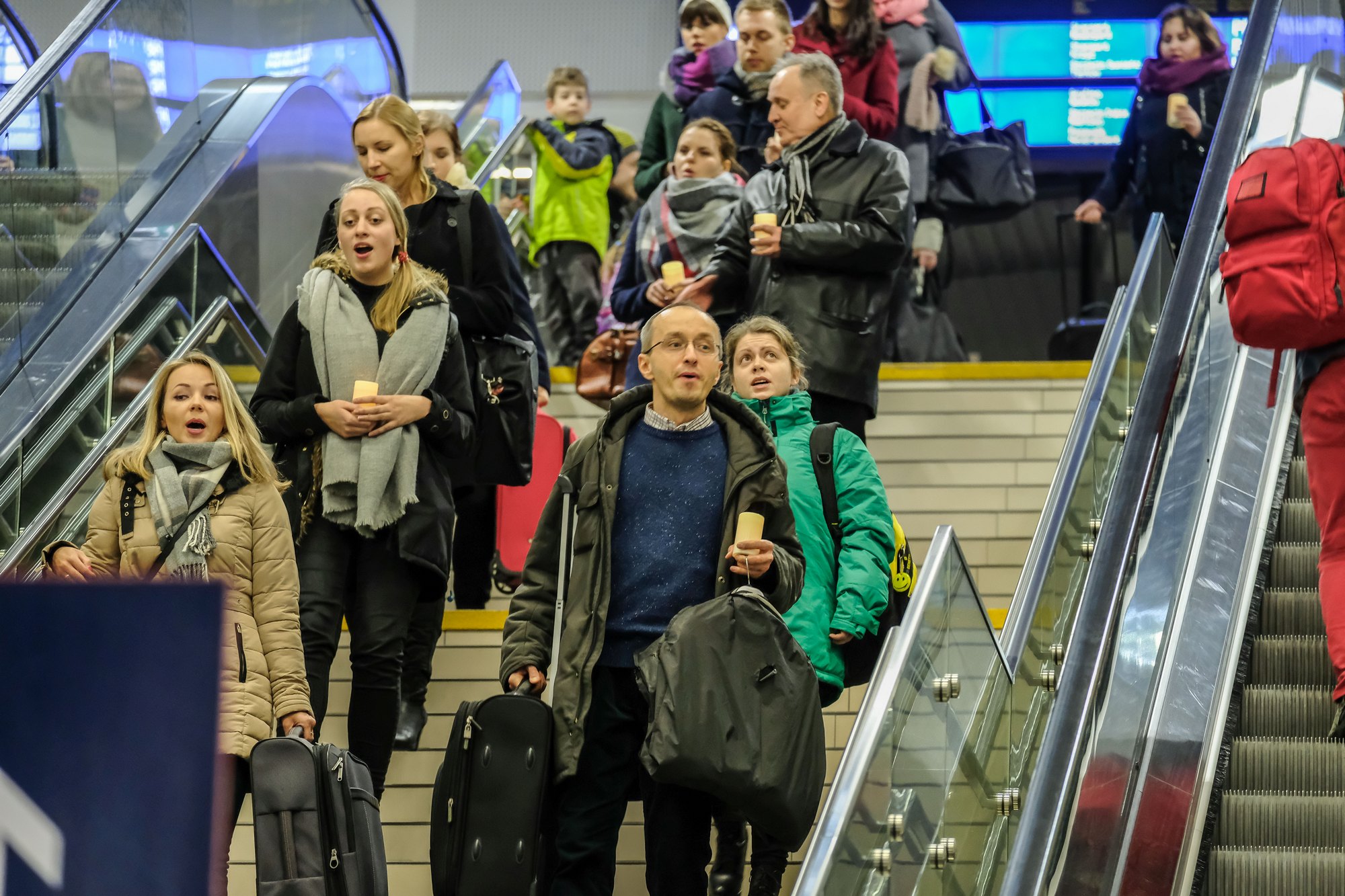 Wydarzenie rozpoczęło się po godz.17, zaśpiewaniem kolędy przez "przypadkowych" wykonawców koło ruchomych schodów. Drugi flash mob był w hali dworca. Tam kolędę zaintonował kwartet śpiewaków, w chóralnych strojach. Organizatorzy występów ujawnili się wykonując krótki koncert.