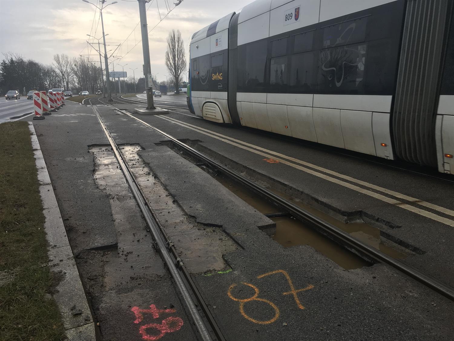 Nowe odkrywki i ślady po wcześniejszych naprawach, czyli wstawkach nowych odcinków szyn, w torowiskach na ulicach Energetyków i Gdańskiej aż do pętli „Basen Górniczy” w Szczecinie mają zniknąć do końca kwietnia tego roku. Taką deklarację usłyszeliśmy od przedstawicieli Energopolu Szczecin SA, który był wykonawcą inwestycji na tej trasie tramwajowej za ponad 75,3 mln zł. Użytkowanej ledwie od dwóch lat i siedmiu miesięcy.