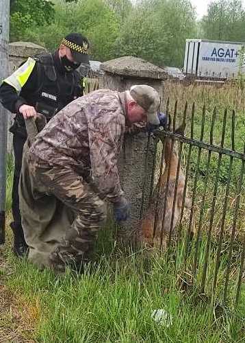 W piątek rano dyżurny z Oddziału Prawobrzeże Straży Miejskiej Szczecin otrzymał zgłoszenie od mieszkańca o tym, że na ulicy Przestrzennej w ogrodzeniu tkwi uwięziona sarenka. Funkcjonariusze pojechali we wskazane przez zgłaszającego miejsce.