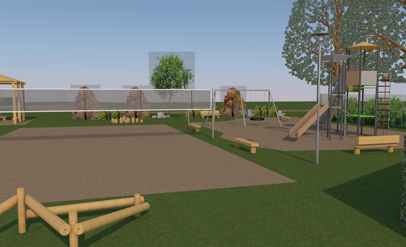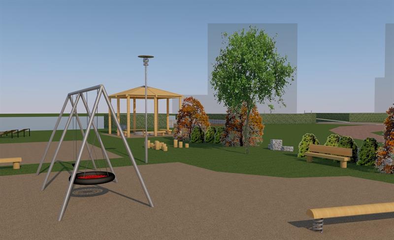 Wybudowany zostanie nowy pomost pływający do cumowania kajaków, a także punkt widokowy nad wodą. Na brzegu staną m.in.: wiata grillowa, leżaki, stoły piknikowe, ławki. Będzie plac zabaw oraz boisko do siatkówki. Teren zostanie oświetlony i obsadzony ozdobnymi krzewami.