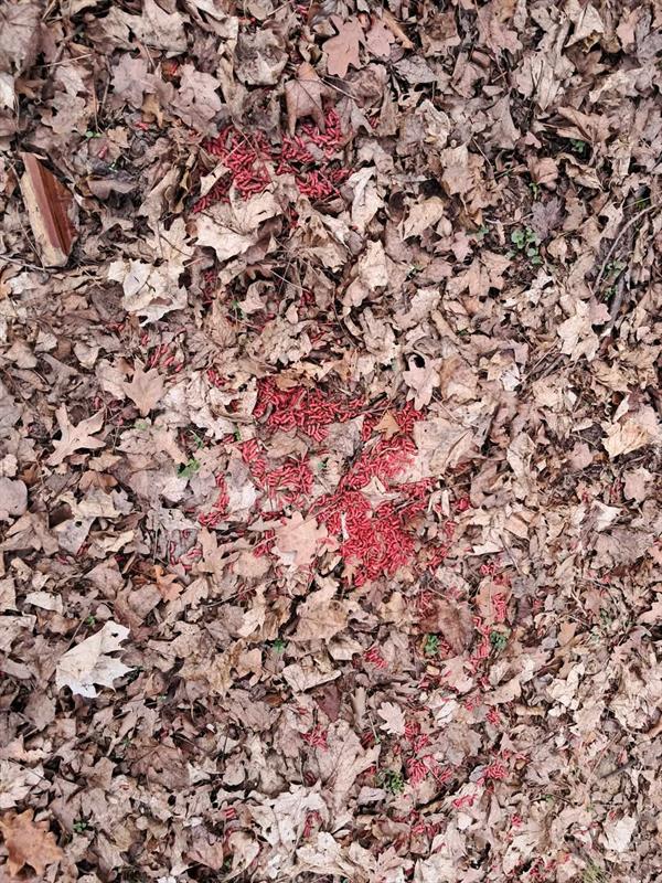 Podejrzany granulat został znaleziony w parku przy ul. Twardowskiego (rejon ul. Witkiewicza i 26 Kwietnia). W pobliżu wybiegu dla psów, a na trasie do kortów tenisowych. Czerwony, w sporej ilości, a mimo to niełatwo było go dostrzec pomiędzy opadłymi liśćmi.
