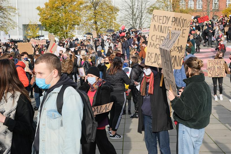 Środa była dniem, w którym wiele kobiet nie stawiło się w pracy z powodu strajku. W Szczecinie o godz. 13 tłum mieszkańców spotkał się po raz kolejny na placu Solidarności, aby wyrazić swój sprzeciw wobec orzeczenia Trybunału Konstytucyjnego ws. prawa aborcyjnego.