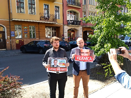 – Przynieśliśmy mu symboliczną miotłę, ponieważ w ostatnich dniach jeździ po Szczecinie, prawdopodobnie łamiąc przepisy ruchu drogowego, i sprząta ulice. Chcemy zasugerować, żeby zrezygnował z ubiegania się o stanowisko prezydenta, zrzekł się immunitetu posła, i żeby zajął się czymś, co Szczecinowi coś daje, czyli sprzątaniem ulic – dodał Dariusz Matecki. – Jednocześnie chcielibyśmy przypomnieć, że nie wszystko da się wymieść.