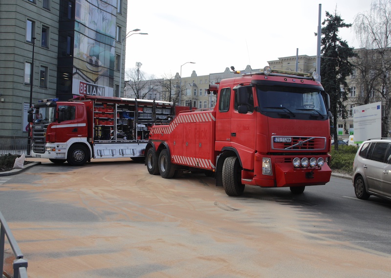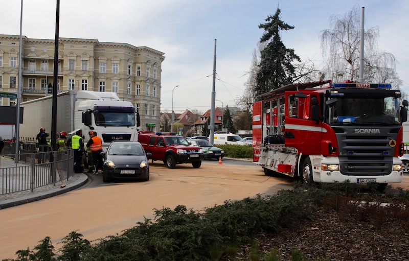 Kolizja i wyciek paliwa - utrudnienia na pl. Szarych Szeregów