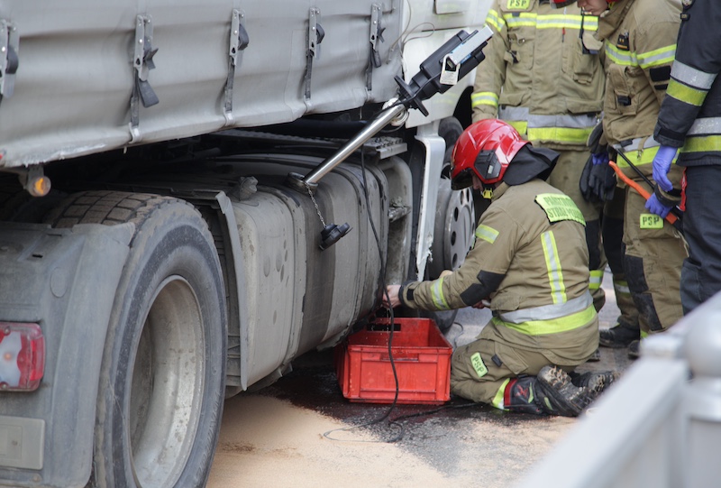 Duże utrudnienia w ruchu spowodowała kolizja, do jakiej doszło we wtorek ok. godz. 14 na pl. Szarych Szeregów w Szczecinie. Samochód osobowy zderzył się z ciężarówką. Nikomu nic się nie stało, ale doszło do wycieku paliwa z uszkodzonego zbiornika. Na miejscu pracuje straż pożarna. (K)