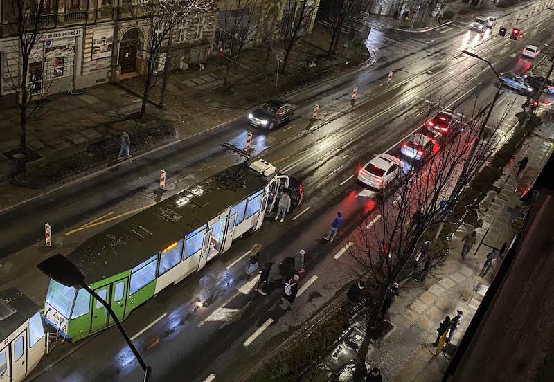 Do kolizji tramwaju z autem osobowym doszło w poniedziałek (5 lutego) wieczorem na ul. Krzywoustego w Szczecinie.