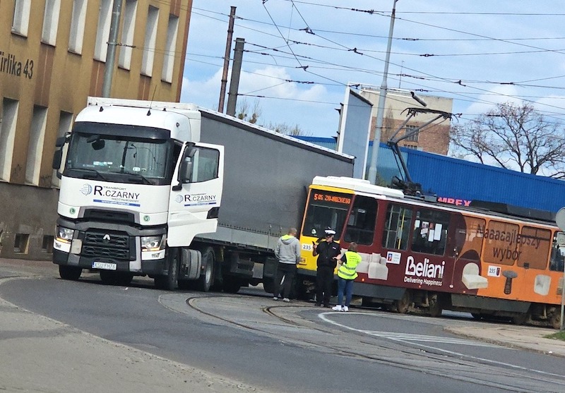Patrząc na główne zdjęcie wygląda jakby tramwaj wyjeżdżający z peronu uderzył w tył naczepy. Motorniczy miał TIRa przed sobą a Renault przy skręcie w lewo ma ograniczoną szerszą widoczność w lusterku wstecznym