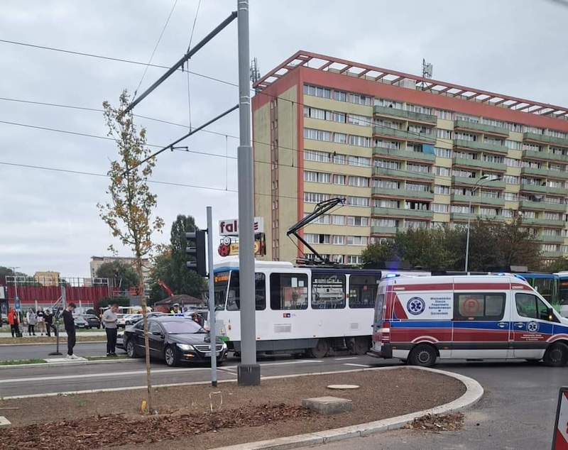 Do kolizji tramwaju z samochodem osobowym doszło po godzinie 15 w alei Wyzwolenia - na wysokości centrum handlowego "Fala" - w Szczecinie.
