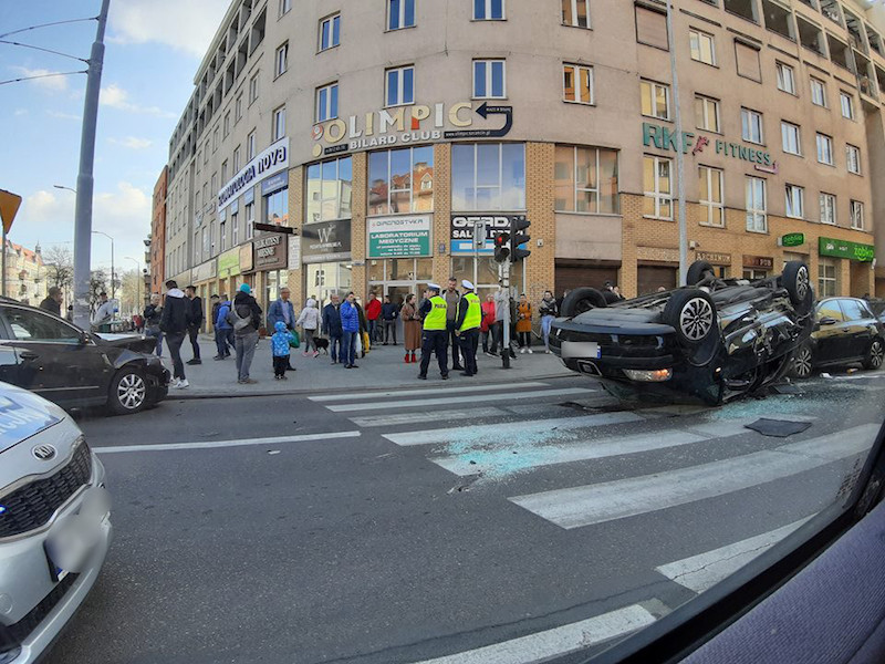 Zdarzenie wyglądało groźnie, jeden z samochodów dachował. Na szczęście, obyło się bez ofiar.