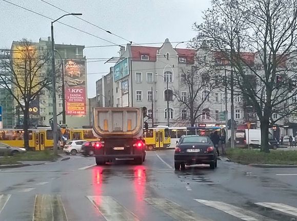 Na zdjęciu: po stłuczce na pl. Kościuszki przejazd był utrudniony.