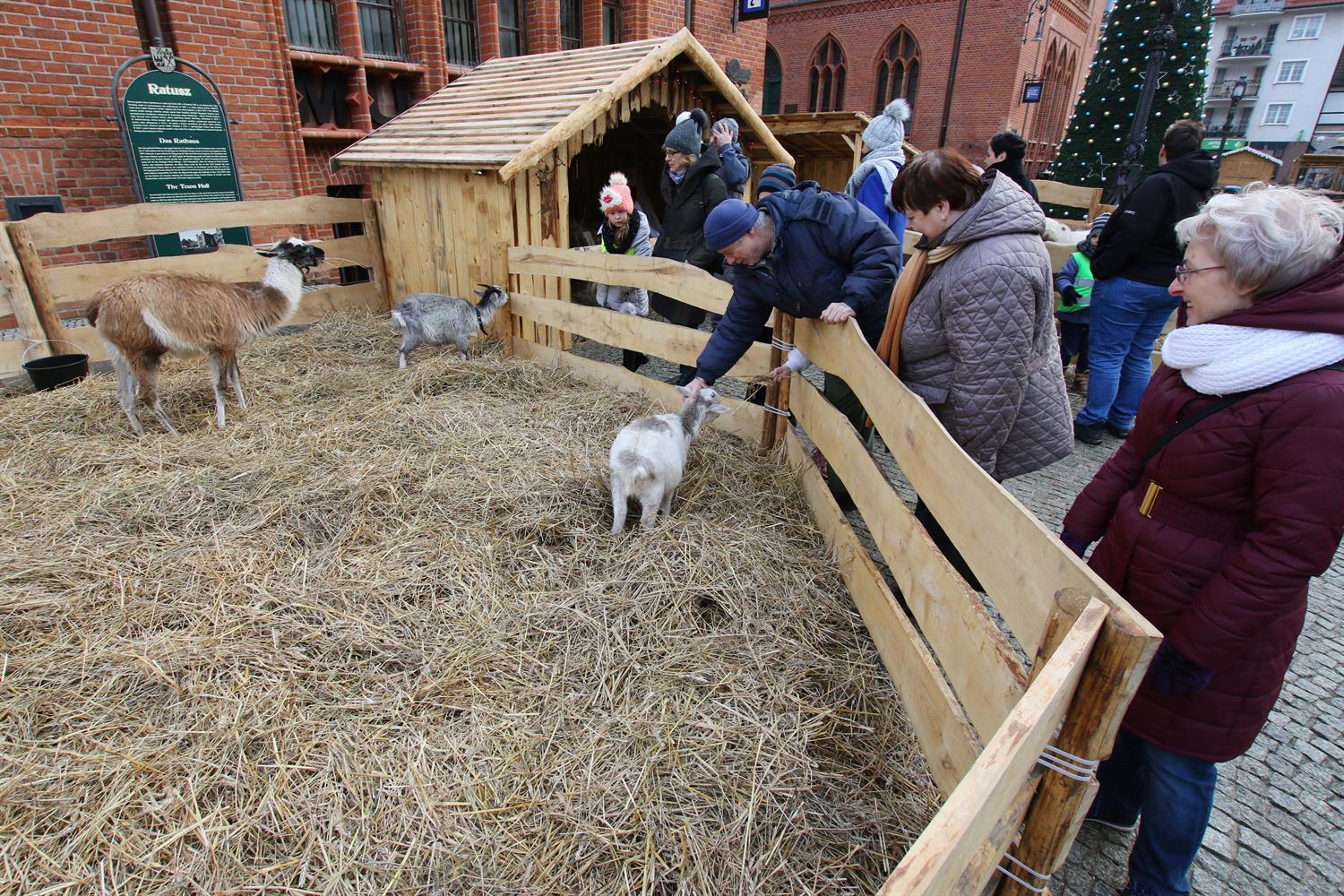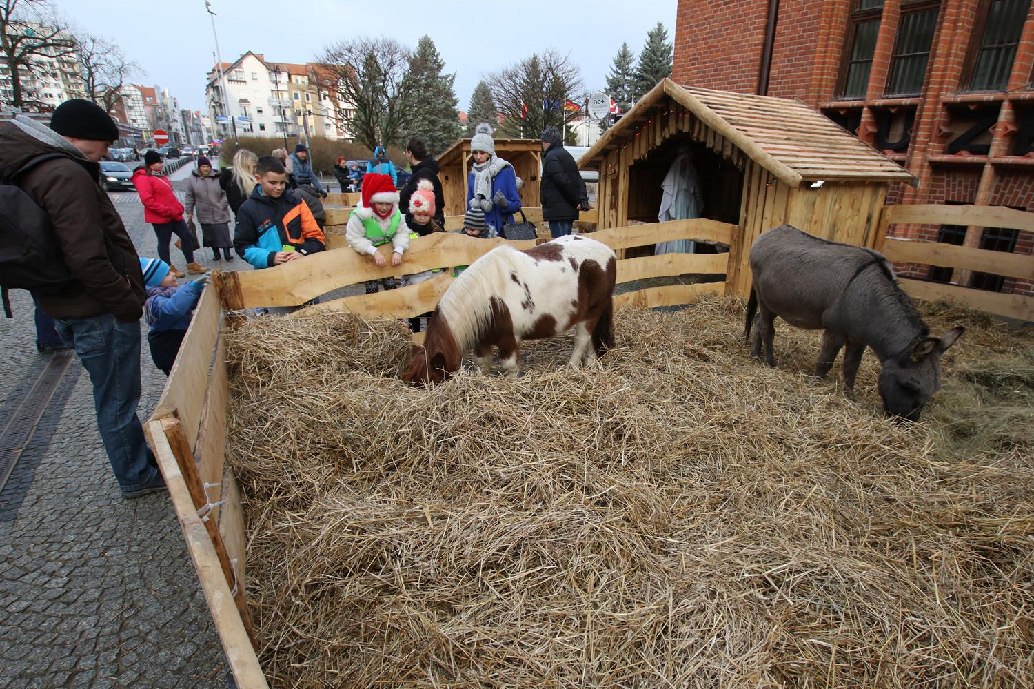 Przed Ratuszem w Kołobrzegu pojawiła się – jak co roku – „żywa” szopka bożonarodzeniowa. Tym razem ku uciesze przechodniów przybrała ona nieco inną niż zazwyczaj formę. Zamiast jednej dużej stajenki, zbudowano dwa wybiegi dla zwierząt. Szopka prezentowana będzie do końca świąt. ©℗