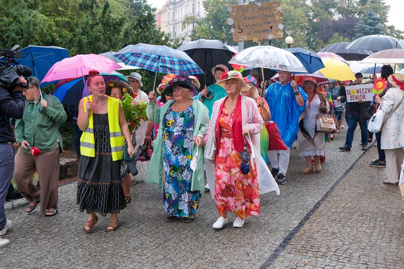 Nawet deszcz nie przeszkodził uśmiechniętym i kolorowo ubranym seniorom w wesołym przemarszu przez centrum Szczecina. Co prawda kapelusze przysłoniły parasolki, a kolorowe sukienki i odświętne garnitury trzeba było osłonić płaszczami przeciwdeszczowymi, to jednak licznie przybyłym seniorom uśmiech nie schodził z twarzy. Świątecznym rozśpiewanym korowodem zainaugurowano Tydzień Inicjatyw Senioralnych, wydarzenie, które już na stałe wpisało się w kalendarz miejskich imprez. Przez pięć kolejnych dni najstarsi mieszkańcy Szczecina mają wyjątkową okazję, by spędzić czas aktywnie, zdobyć nowe umiejętności i poznać się wzajemnie.