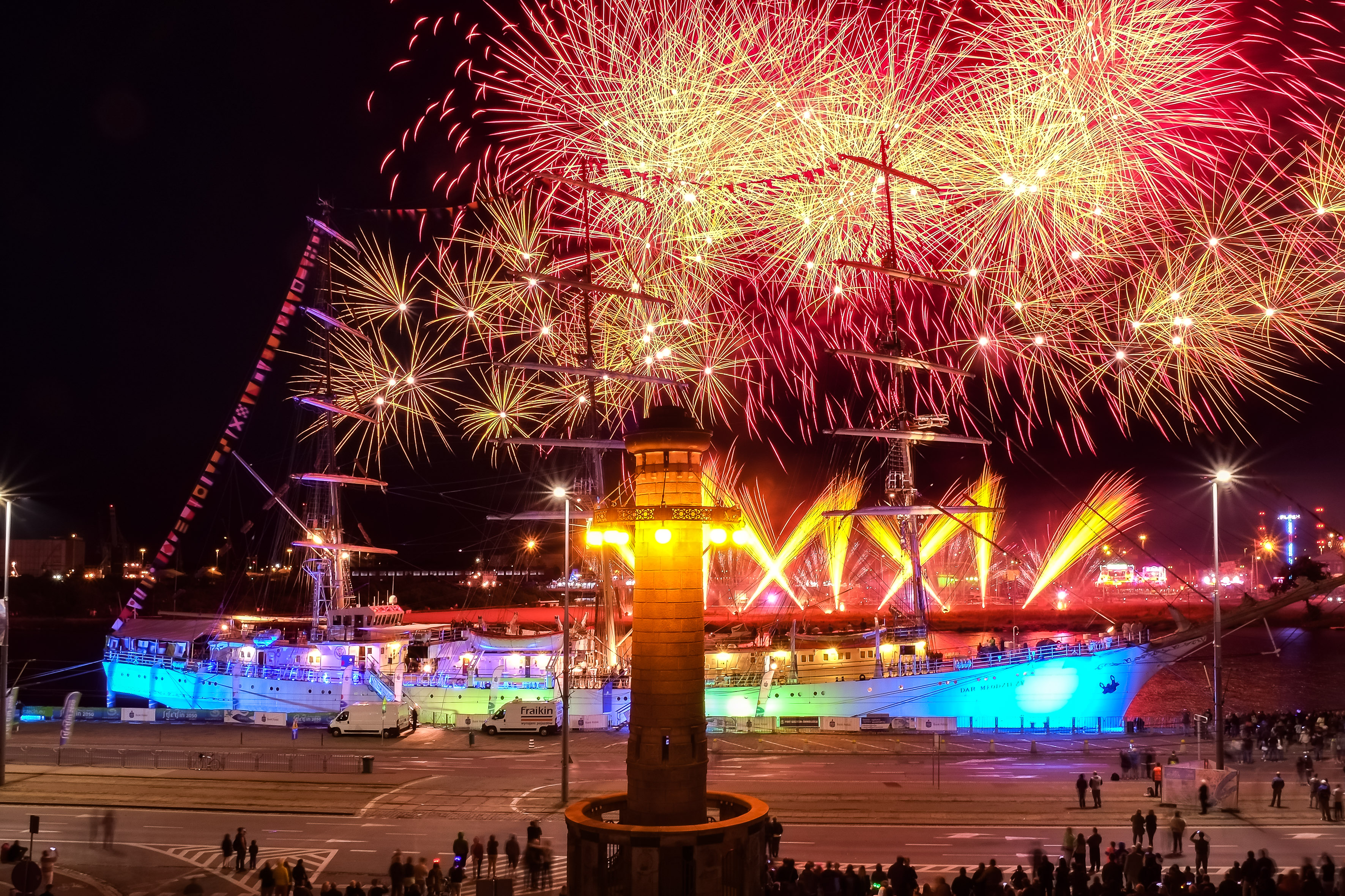 Kulminacją soboty na Dniach Morza był pokaz sztucznych ogni. Tuż po godzinie 23 niebo rozświetliło się nad Wałami Chrobrego tysiącami wybuchów fajerwerków. Niezwykłą, morską oprawę pokazu zapewniał kolorowo podświetlony żaglowiec "Dar Młodzieży".